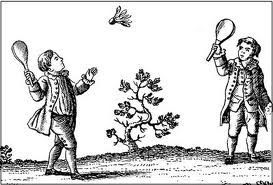 Ils se mettent alors en tête d'y jouer. Mais n'ayant pas de balle sous la main, ils décident d'utiliser un bouchon de champagne, auquel ils attachent quelques plumes. Amusés et séduits par leur trouvaille, ils décident de faire connaître ce jeu, sous le nom du château où il est né : Badminton.
