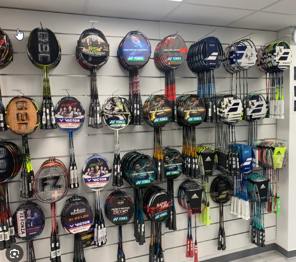 Le marché des raquettes de badminton est caractérisé par une très grande diversité, qu'il s'agisse du type de raquette, de leur qualité et de leur prix. Cette grande diversité de raquettes est le résultat du développement récent et important du badminton. Cette variété nécessite un minimum de connaissances sur les caractéristiques des raquettes et ce afin de trouver celle qui correspond le mieux à ses besoins. Les raquettes de badminton - fines et flexibles - sont beaucoup plus légères et étroites que les raquettes de tennis. La taille et le poids de ces raquettes peuvent varier : La longueur totale du cadre ne dépasse pas 680 millimètres et la largeur totale 230 millimètres. Leur tête (tamis) mesure 280 mm de long sur 220 mm de large.